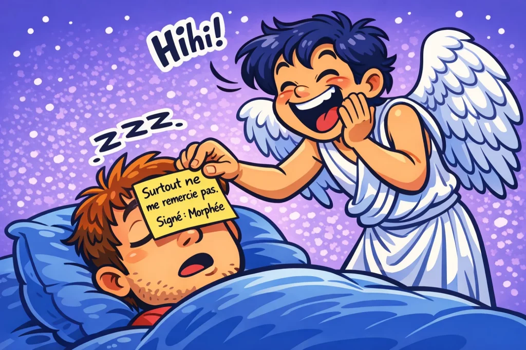 Le candidat dormeur que j’étais a eu le malheur de penser au mythe de Morphée. C’est le genre d’en-cas tardif à ne surtout pas soumettre à mon cerveau avide. C’est un en-cas qui va très vite évoluer en apéritif dinatoire, puis en banquet pantagruélique. J’aurais pu penser : « Tiens, demain il ne faudra pas oublier de sortir la poubelle ». Là c’était plié, je m’endormais dans la foulée.